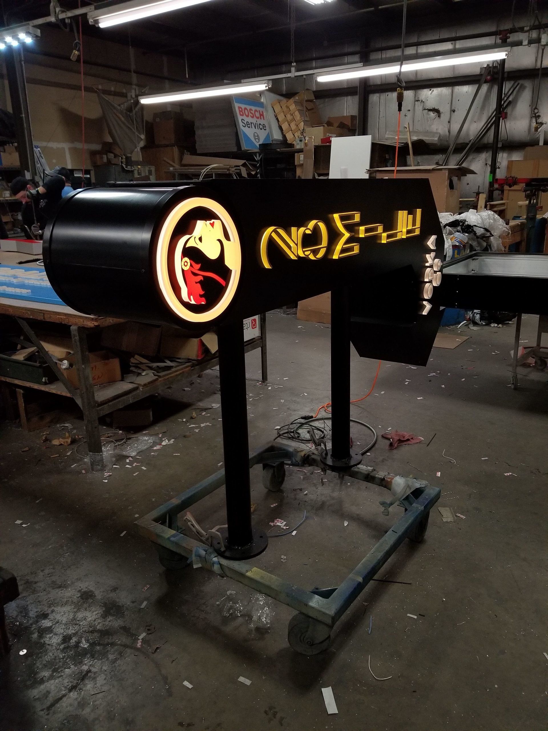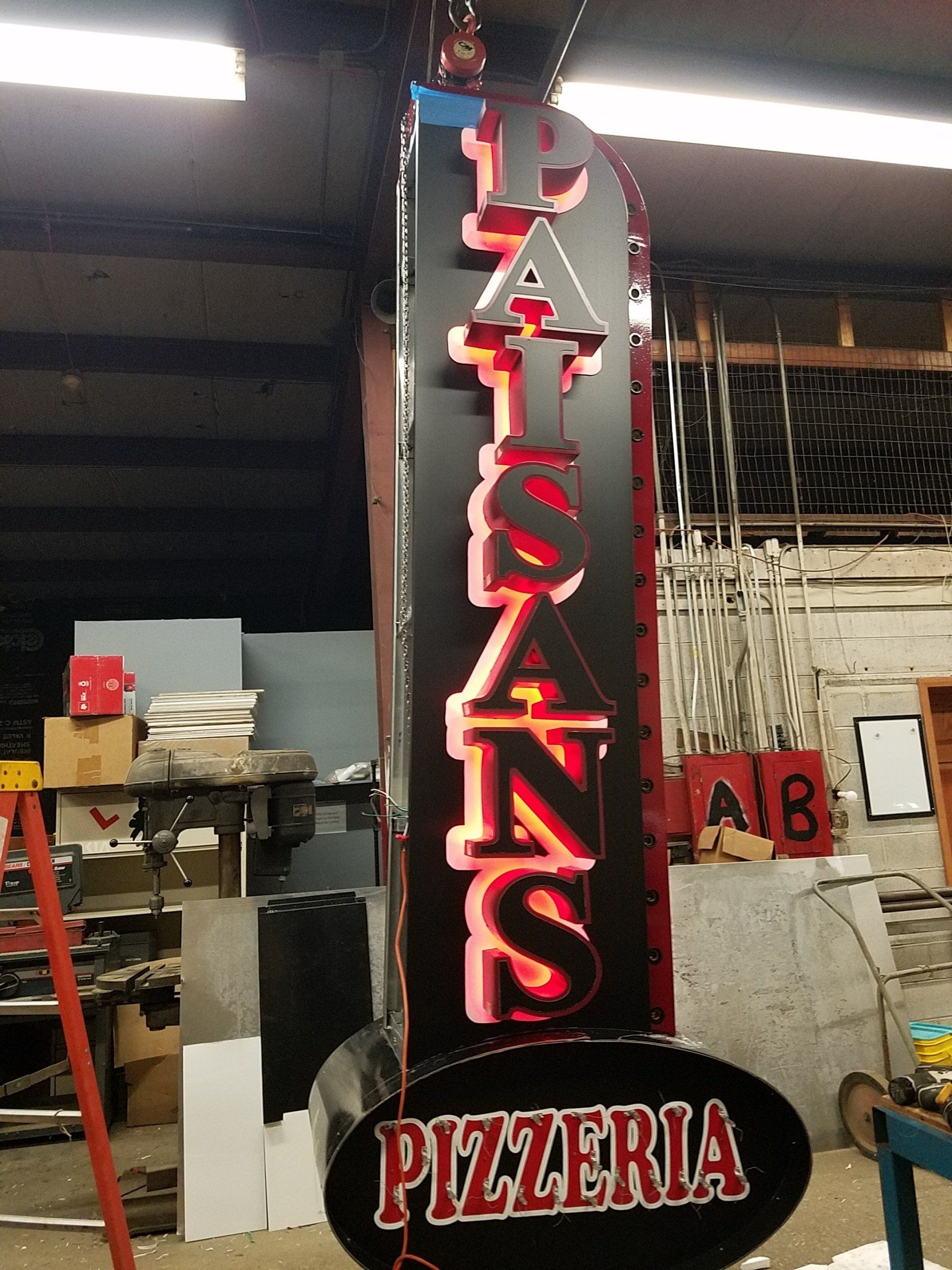A blade sign is a type of projecting sign mounted on a building facade or storefront pole or attached to a surface perpendicular to the normal flow of traffic. These signs are one of the most effective way of attracting foot traffic into your establishment. These are sometimes non-lit and lit in various ways.